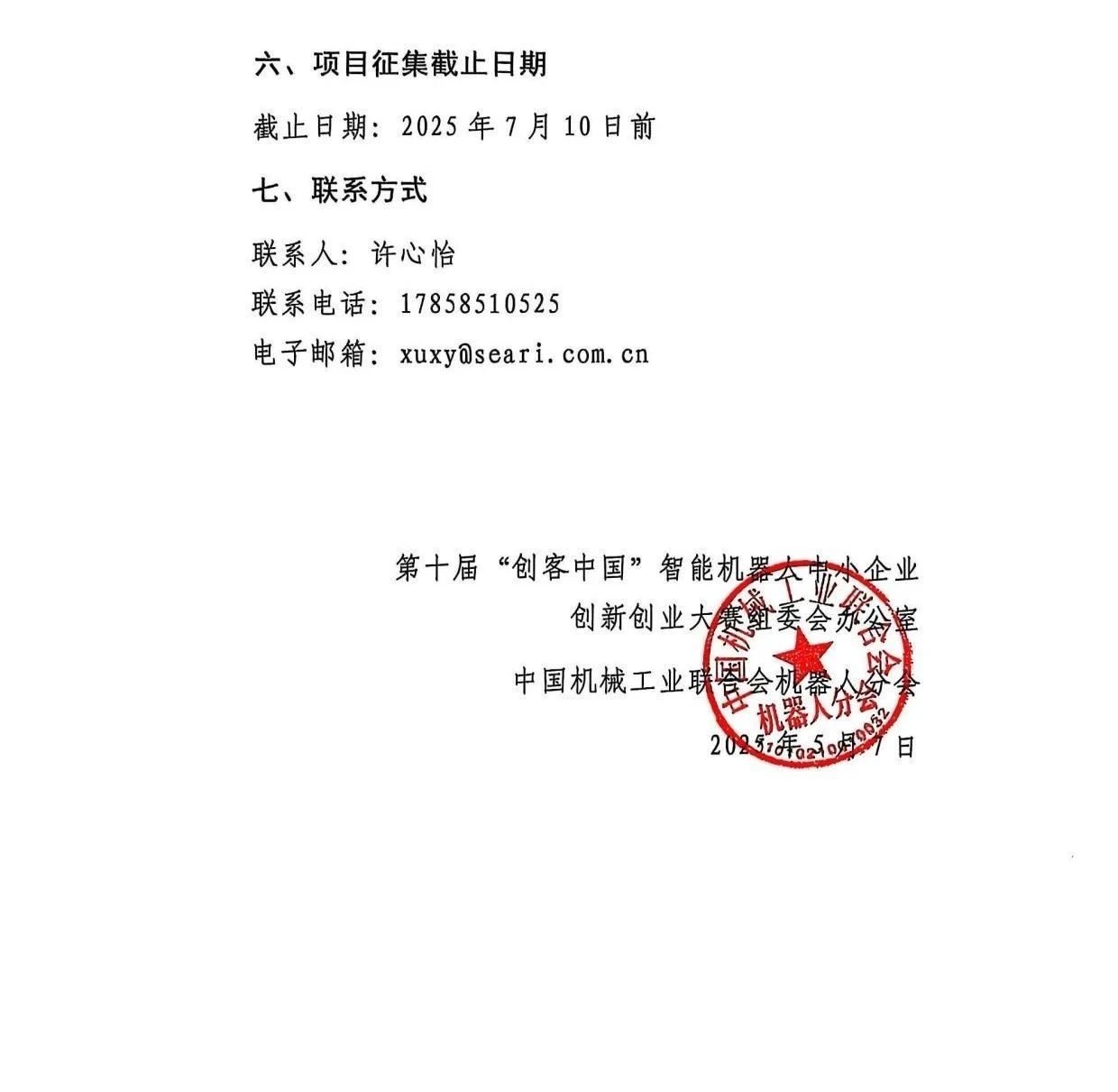 关于开展第十届“创客中国”智能机器人中小企业创新创业大赛项目征集工作的通知.pdf