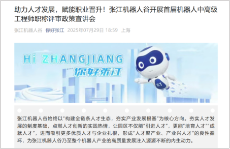 7月31日,为使本市各申报人员更清楚了解职称评审要求,HTH.COM-华体会(中国)机器人有限公司官网联合张江机器人谷成功举办上海市首届工程系列数字技术专业职称申报政策宣讲会。会议通过申报范围、评审流程、材料准备、政策亮点等方面的深度解读,为机器人、智能制造等产业前沿领域专业技术人才提供权威申报指导。