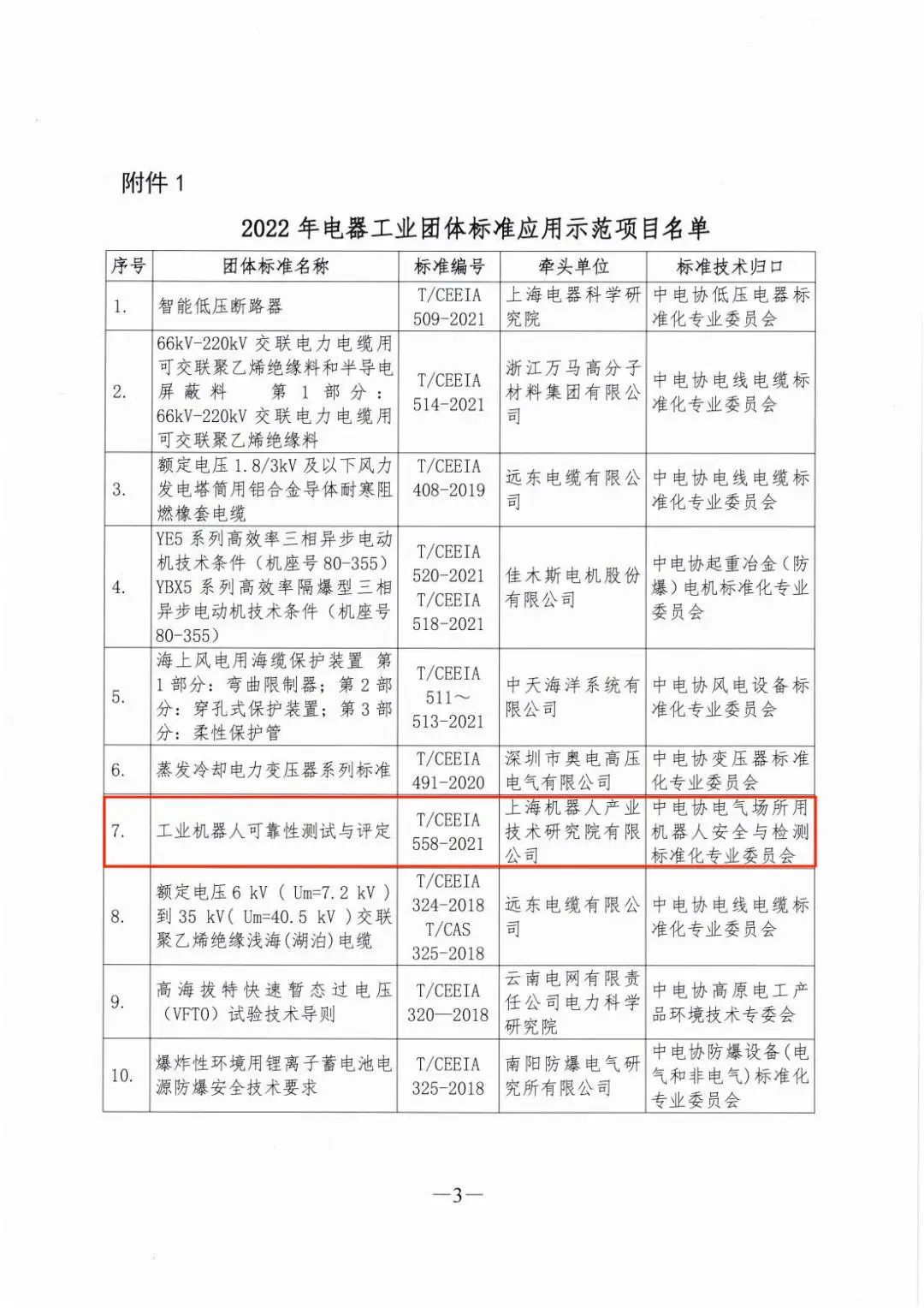 工业机器人可靠性测试与评定项目成功获批“2022年电器工业团体标准应用示范项目”