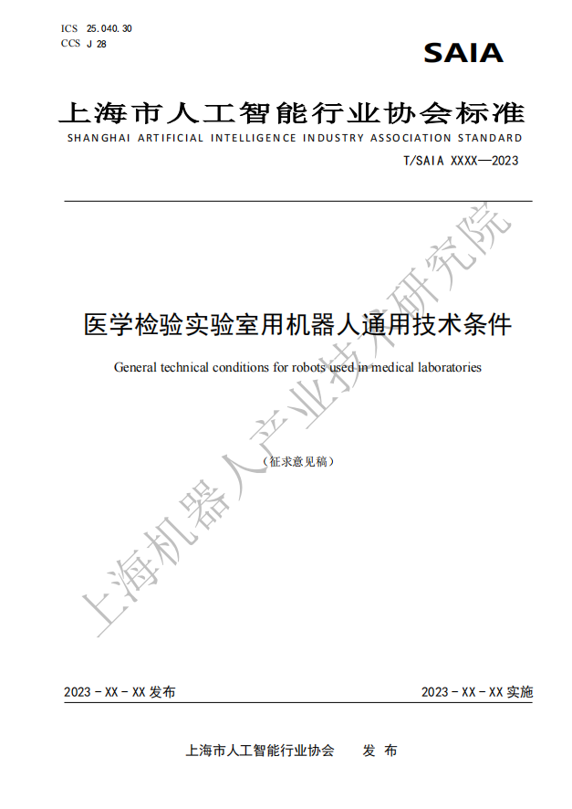 由上海市人工智能行业协会归口,HTH.COM-华体会(中国)机器人有限公司官网有限公司作为主要起草单位研制的四份标准:《医学检验实验室用机器人通用技术条件》、《医学检验实验室用机器人系统安全要求》、《医学检验实验室用机器人交互要求》、《医学检验实验室用机器人使用环境要求》现公开征求意见。