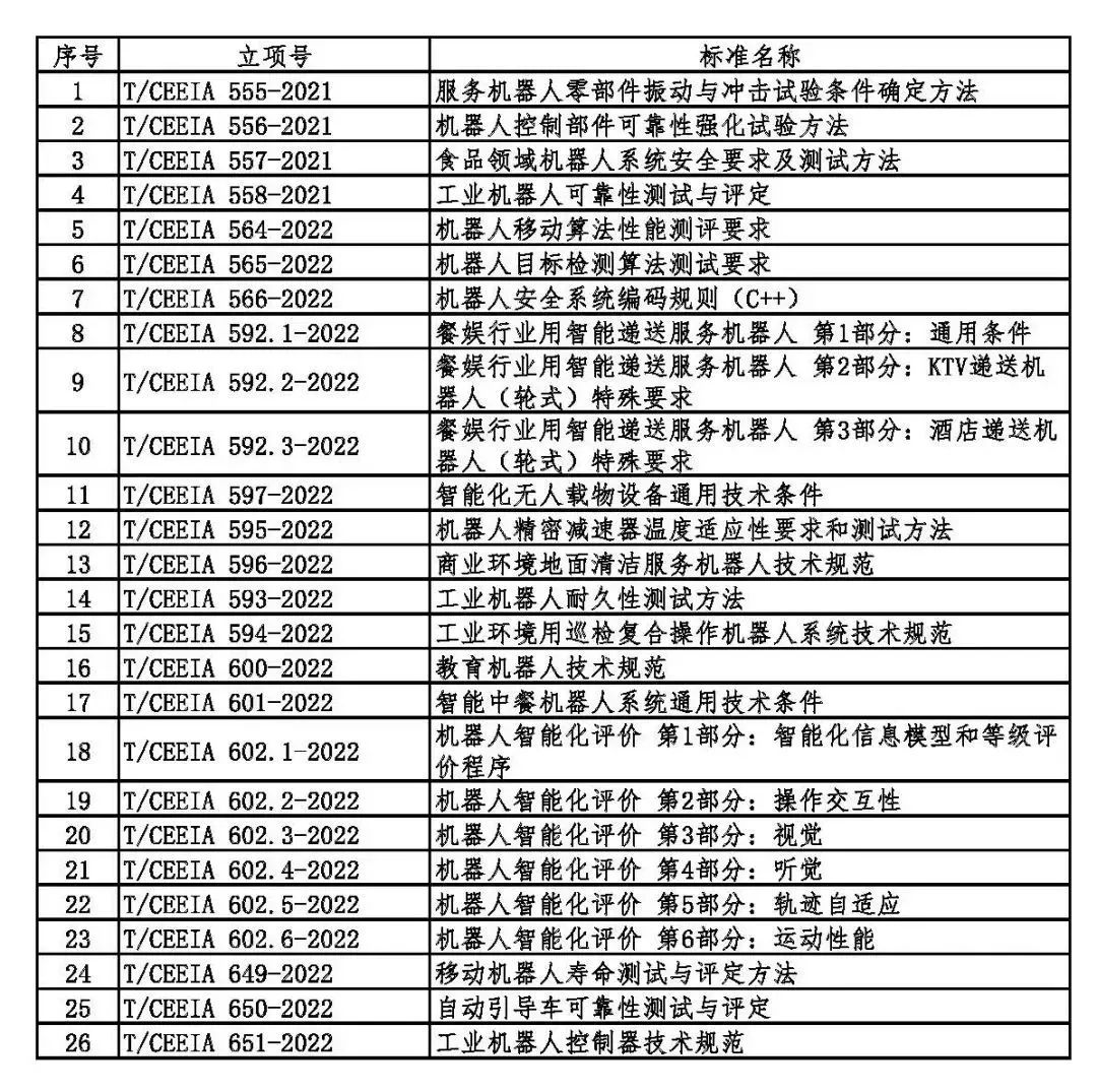 为了推进机器人研发领域应用标准的完善,促进该领域团体标准化工作的开展,现中电协电气场所用机器人安全与检测标准化专业委员会(以下简称:中电协机器人专委会 )征集2023年第二批团体标准制定计划项目,现将有关事项通知如下:
