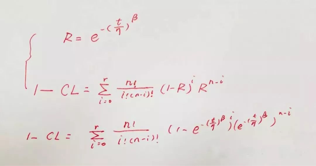二项式分布参数法,需要提前知道该产品服从威布尔分布的形参Beta,以及该产品的可靠性目标和需要的置信度。形参Beta一般是根据产品或近似产品的历史数据来设定,如某机械部件疲劳失效的形参经验值为3.